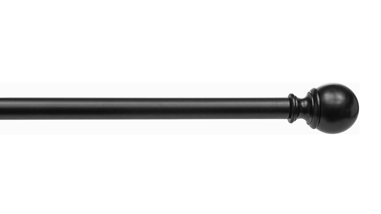 You’ll notice most designer spaces skip fussy rods in favor of simple black or dark metal curtain rods with clean finials. Search Amazon for basic matte black rods that extend to your window width and beyond.