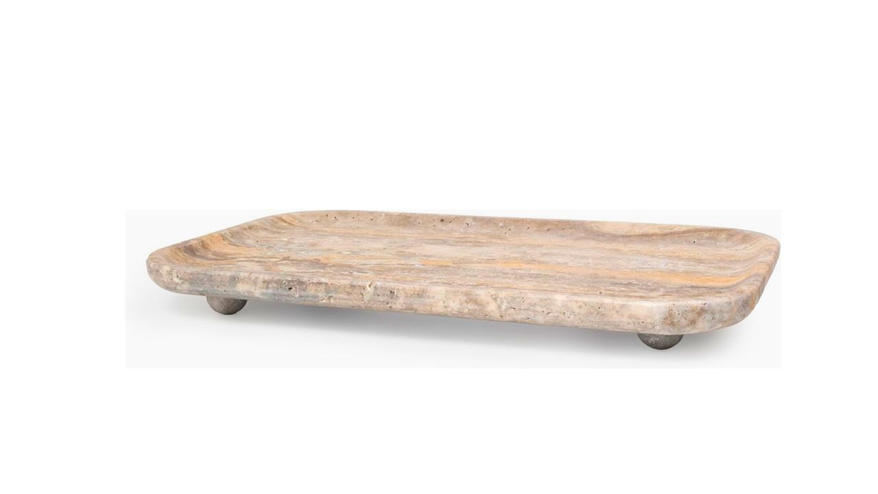 On Amazon, look for marble or faux-marble footed trays or cake stands in 8–12 inch sizes. Even a small one lifts things up and breaks up flat surfaces. It feels more like a little styled moment and less like random bottles scattered around.
