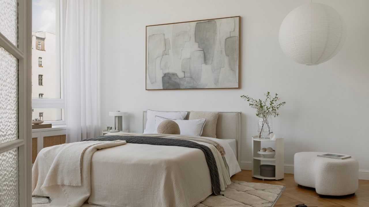 Choose neutral landscapes, abstracts, or black-and-white photography. Hang them at eye level and give them space instead of cramming twenty pieces on one wall. Bigger, calmer art feels more expensive than lots of small busy pieces.