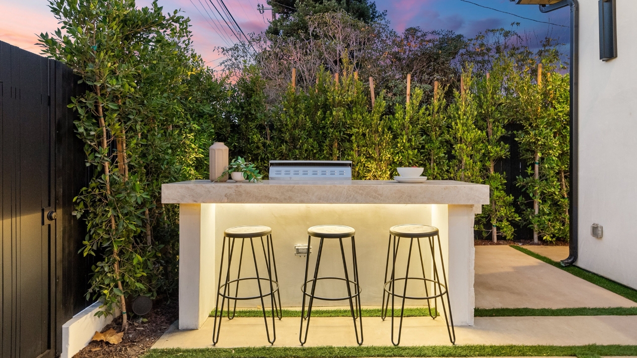 An outdoor bar doesn’t have to be fancy. A basic counter setup, a mini fridge, or even a rolling cart turns your patio into the go-to spot for gatherings.