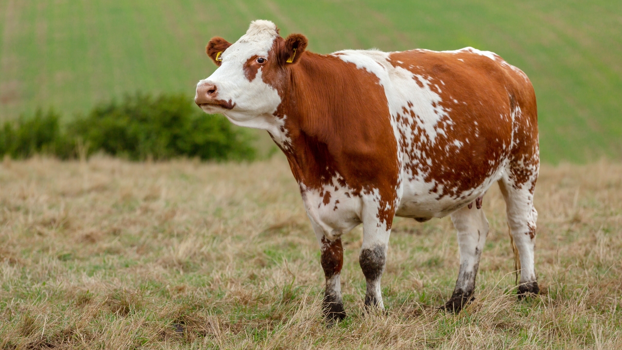 Ayrshires are striking with their reddish-brown patches on a white body. They’re medium-sized and hardy, thriving in a variety of climates. They’re valued for both their appearance and reliable milk production.
