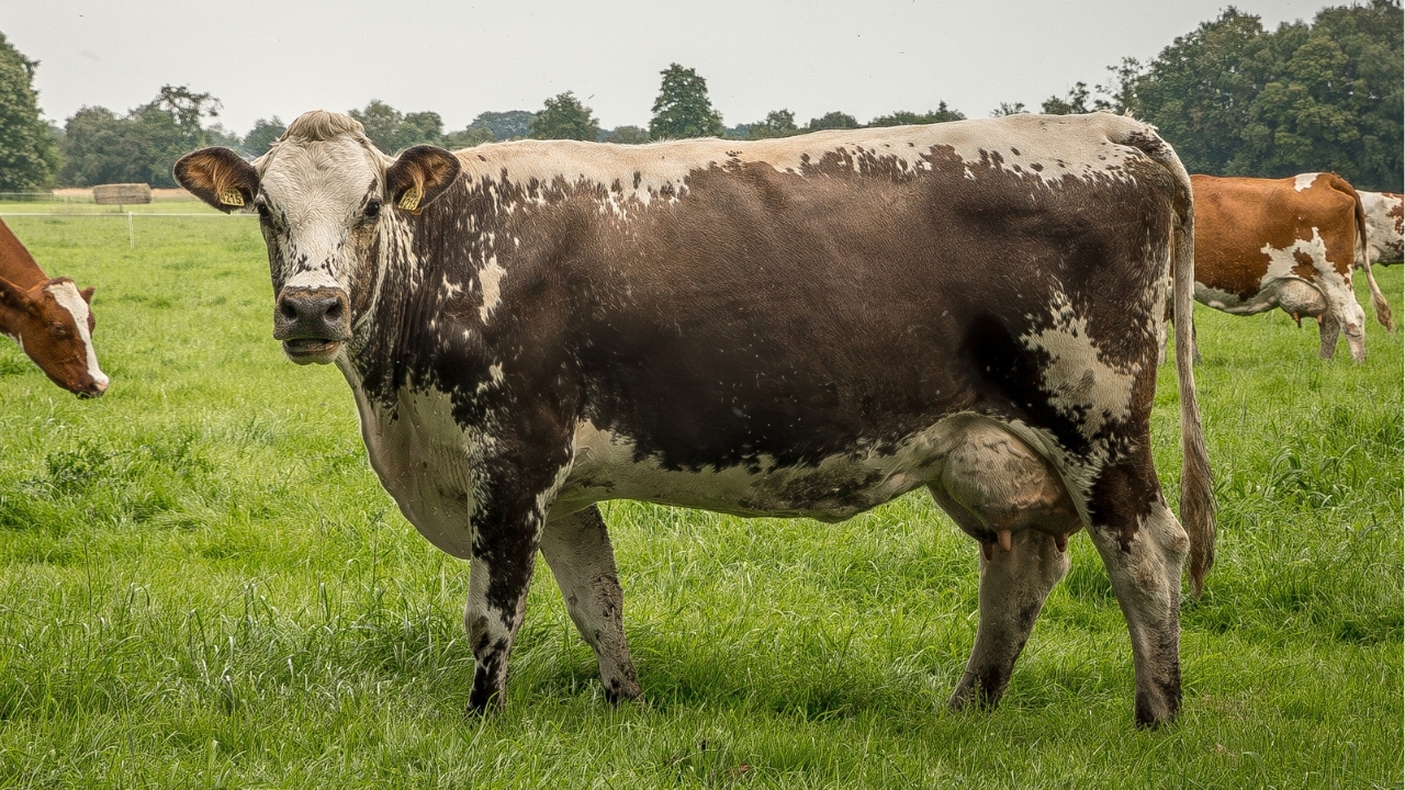 Normande cattle have a unique look with their speckled coats and broad white faces. They’re a French breed prized for both milk and beef, but their appearance often steals the show. Their markings are so varied that no two look exactly alike.