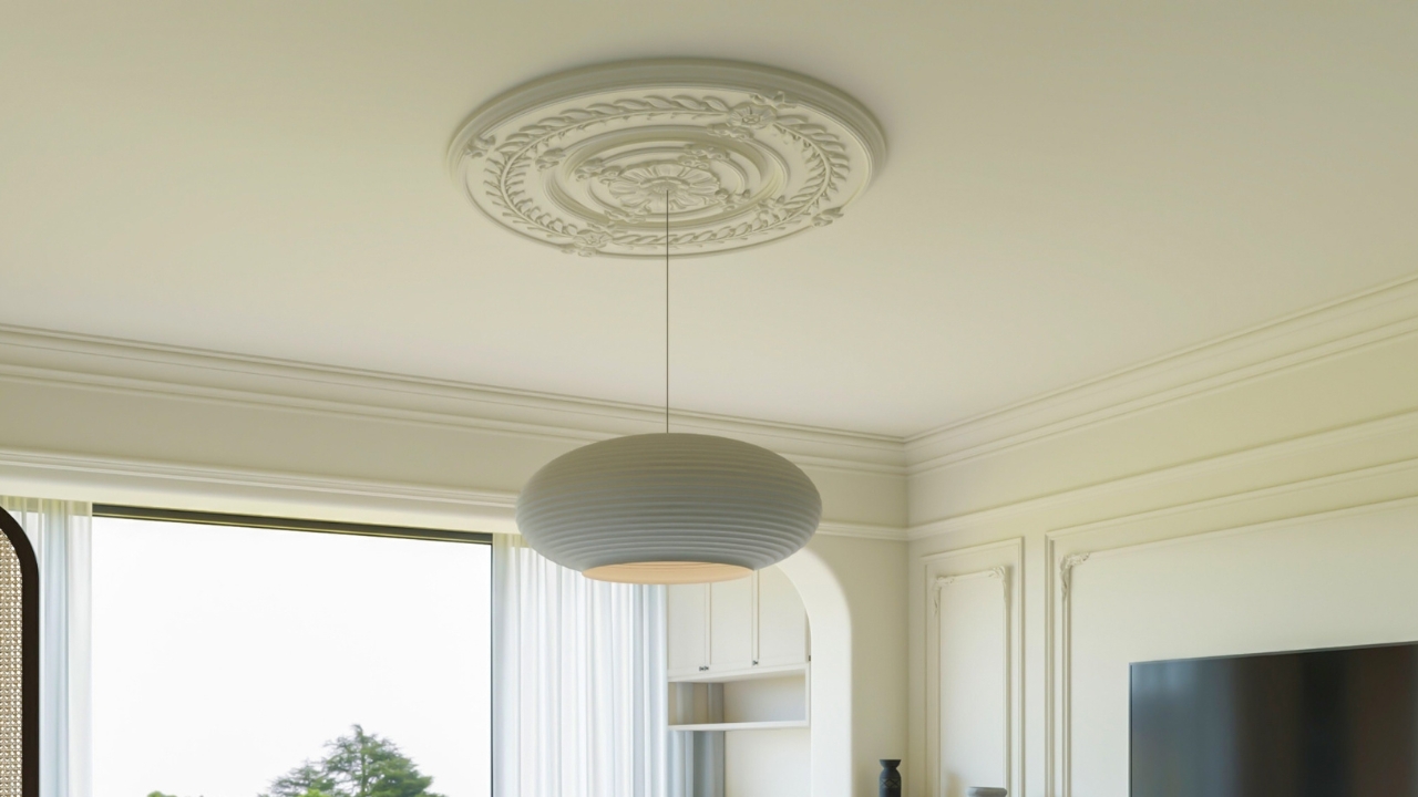 A ceiling medallion around a basic light fixture adds instant architectural detail. These can be found for under $50 at Home Depot or Lowe’s. Pair one with even a simple flush mount, and it suddenly feels like you splurged on custom millwork.