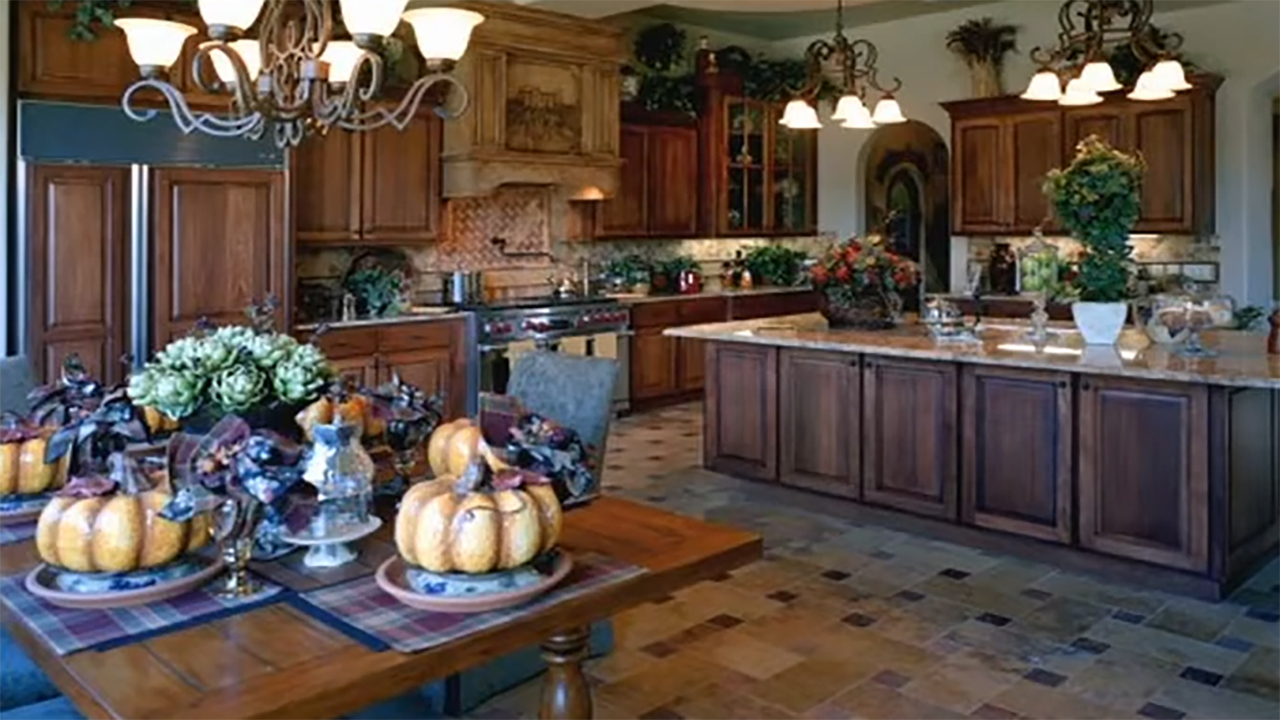 Dark wood, heavy granite, and faux-painted walls were everywhere.