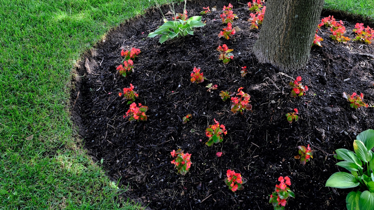 Bare dirt around trees, fence posts, or sign poles can make your yard look unfinished. Tossing down some mulch around the base neatens it up and helps with water retention, too.