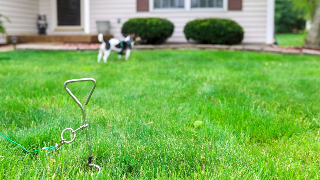 Anchor it deep, place it in solid ground, and make sure the cable isn’t fraying. A weak tie-out is a one-time fix that turns into a repeat problem.