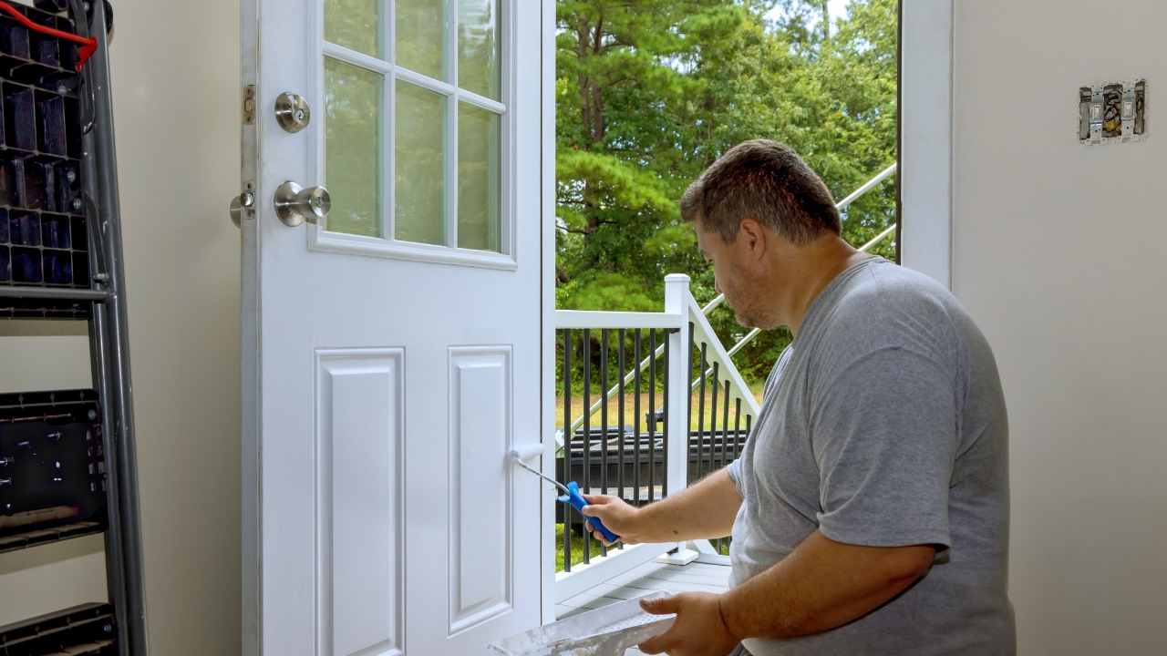 A freshly painted front door makes a big difference. If the paint is faded, chipped, or outdated, it can drag down the entire entryway.