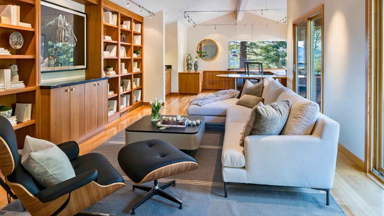 A recliner built into the couch felt modern and lasting.