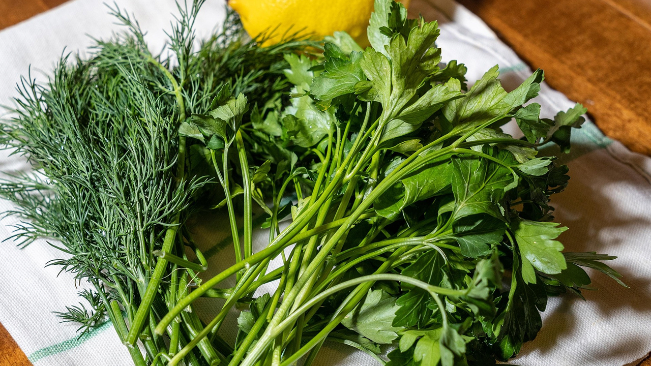 Instead of tossing them in the fridge, trim the stems and place them in a glass of water, loosely covered with a bag. Basil, parsley, and cilantro last much longer this way.