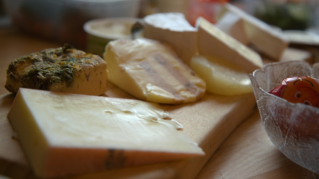 Wax paper or parchment wrapped around it, then stored in a container, helps cheese stay fresh longer. It prevents mold from spreading and cuts down on waste.