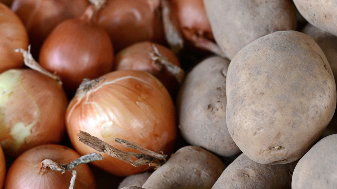 The gases from onions make potatoes spoil faster, and vice versa. Keeping them separate extends the life of both. Onions do best in a ventilated bin or mesh bag in a cool place.