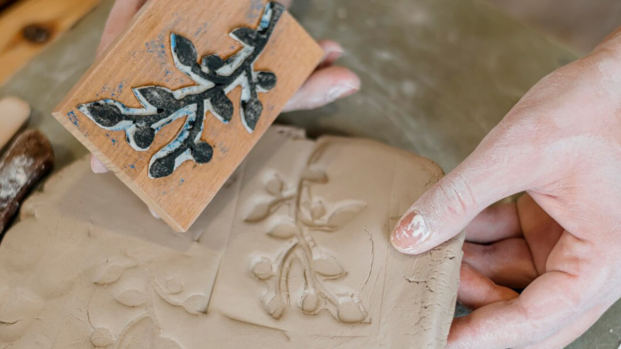Use air-dry clay or bakeable clay, roll it out, and press textured items into it—lace, greenery, or a knit sweater. Cut shapes with cookie cutters and add a hole for hanging.