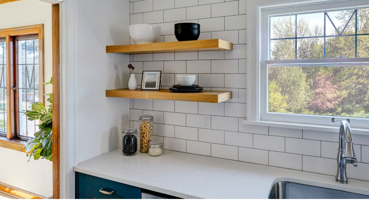 Open shelving looks clean in photos, but real life needs storage. If you rip out upper cabinets and replace them with three floating boards, you’re probably going to regret it once you run out of room to put anything practical.