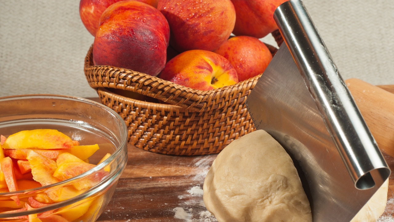 This little tool helps transfer chopped veggies from the cutting board to the pan without dropping half of it along the way. It’s also great for cleaning up flour or dough off the counter.