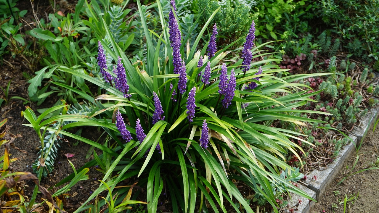 Liriope is one of those border plants that always looks tidy without much help. It’s technically a grass-like groundcover, but it puts out little purple flower spikes in late summer that give it a nice boost of color.