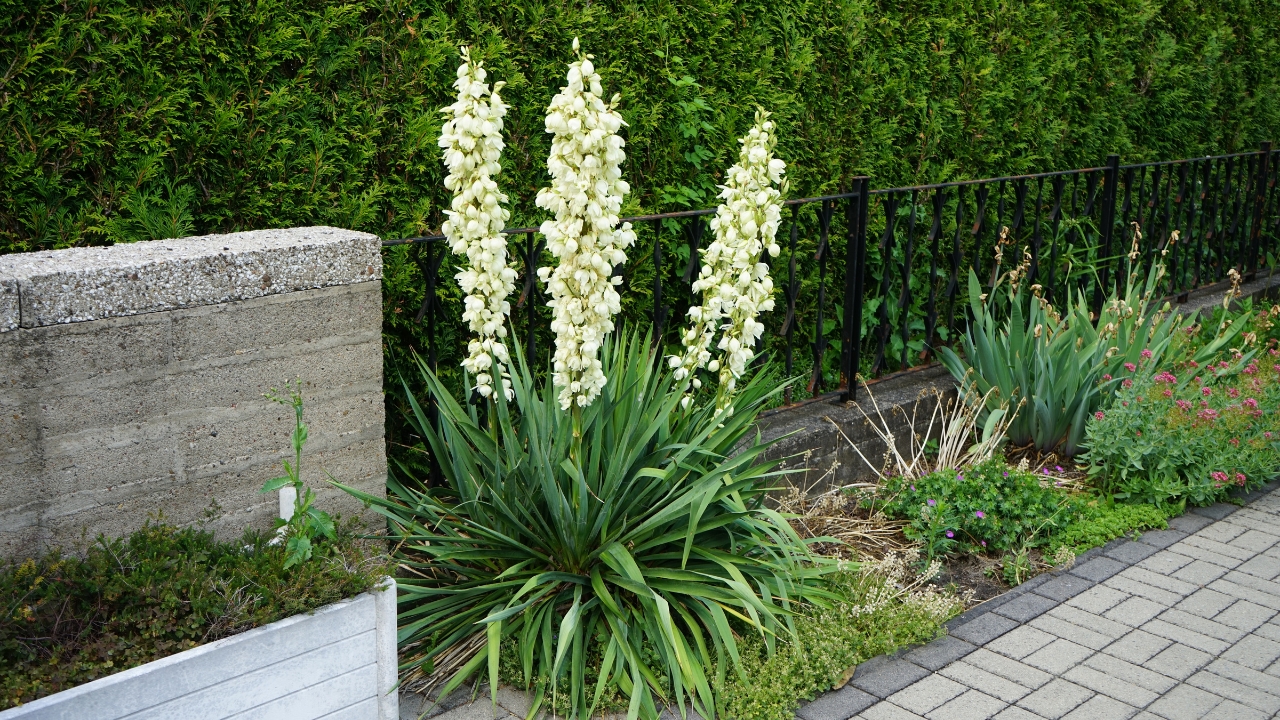 Yucca plants are built for survival. They’re striking with their spiky leaves and tall flower stalks, but they don’t need pampering. They thrive in sandy or rocky soil and laugh in the face of drought. If you’ve got a dry, sunny spot, this is your plant.