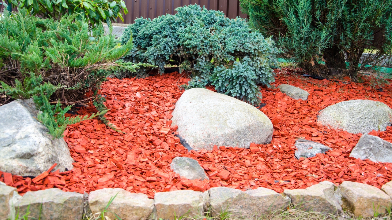 Bright red mulch used to be everywhere, but it’s fallen out of favor for good reason. The color looks unnatural and can clash with just about everything else in your yard.