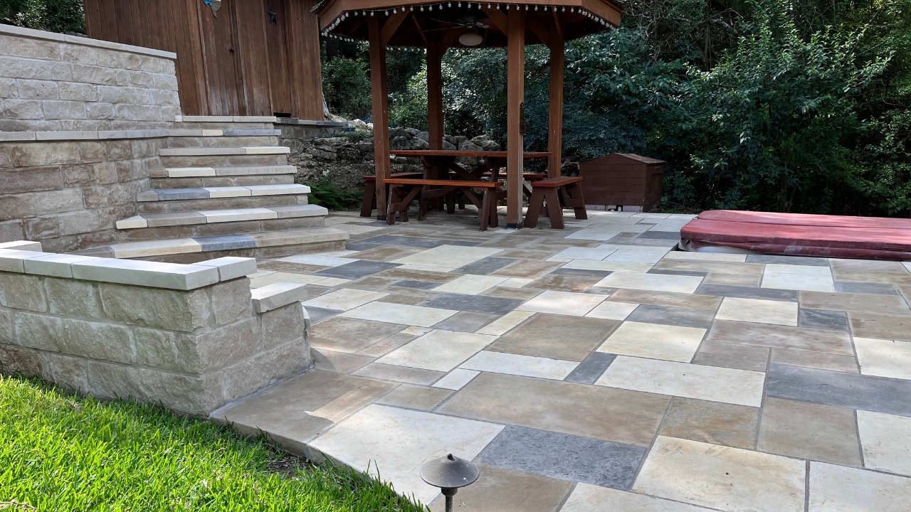 That patchwork patio look—using whatever pavers were on sale—isn’t doing your yard any favors. Mismatched shapes and colors break up the space in a choppy way.