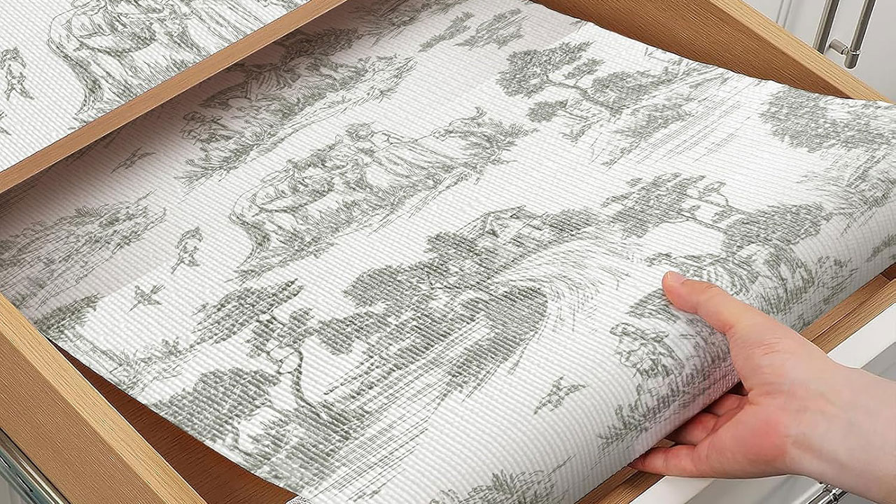 Non-slip peel-and-stick liners make drawers and shelves feel newer. You can use them to cover old contact paper or give cheap cabinetry a quick refresh. Choose a print or color that complements the room for a little extra detail.