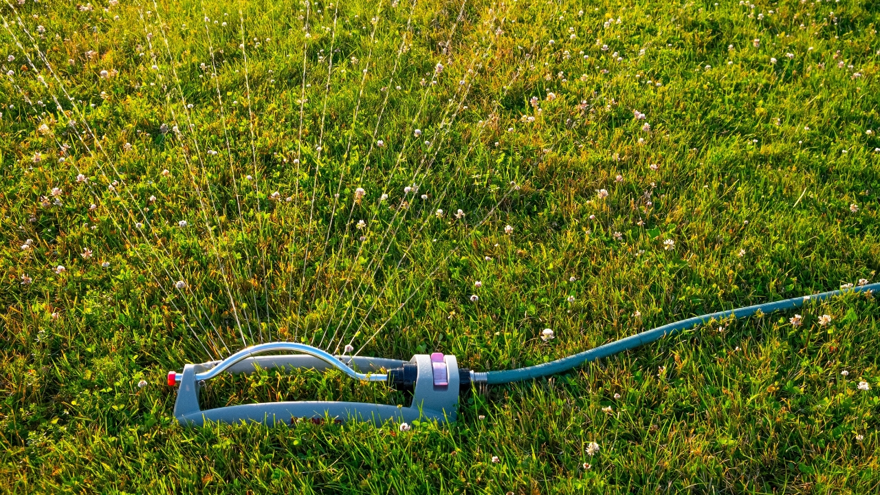 Set your sprinkler or hose to soak the soil about 6–8 inches deep. Early morning is best so the water can soak in before the heat of the day.