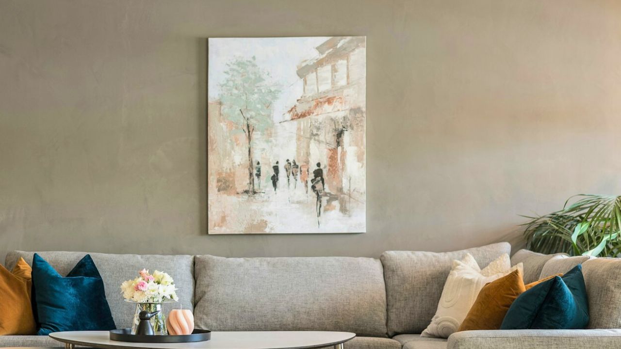 Tiny frames on big walls read dorm, not done. Go larger and fewer, centered over furniture with bottoms aligned so the eye can rest. If you love galleries, match frames and mats and let the art vary.