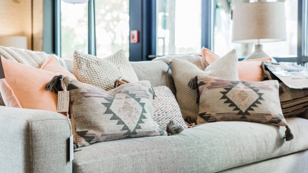 You don’t need new pillows—just new covers. Swapping out tired prints for textured fabrics or solid neutrals can completely refresh a sofa or bed.