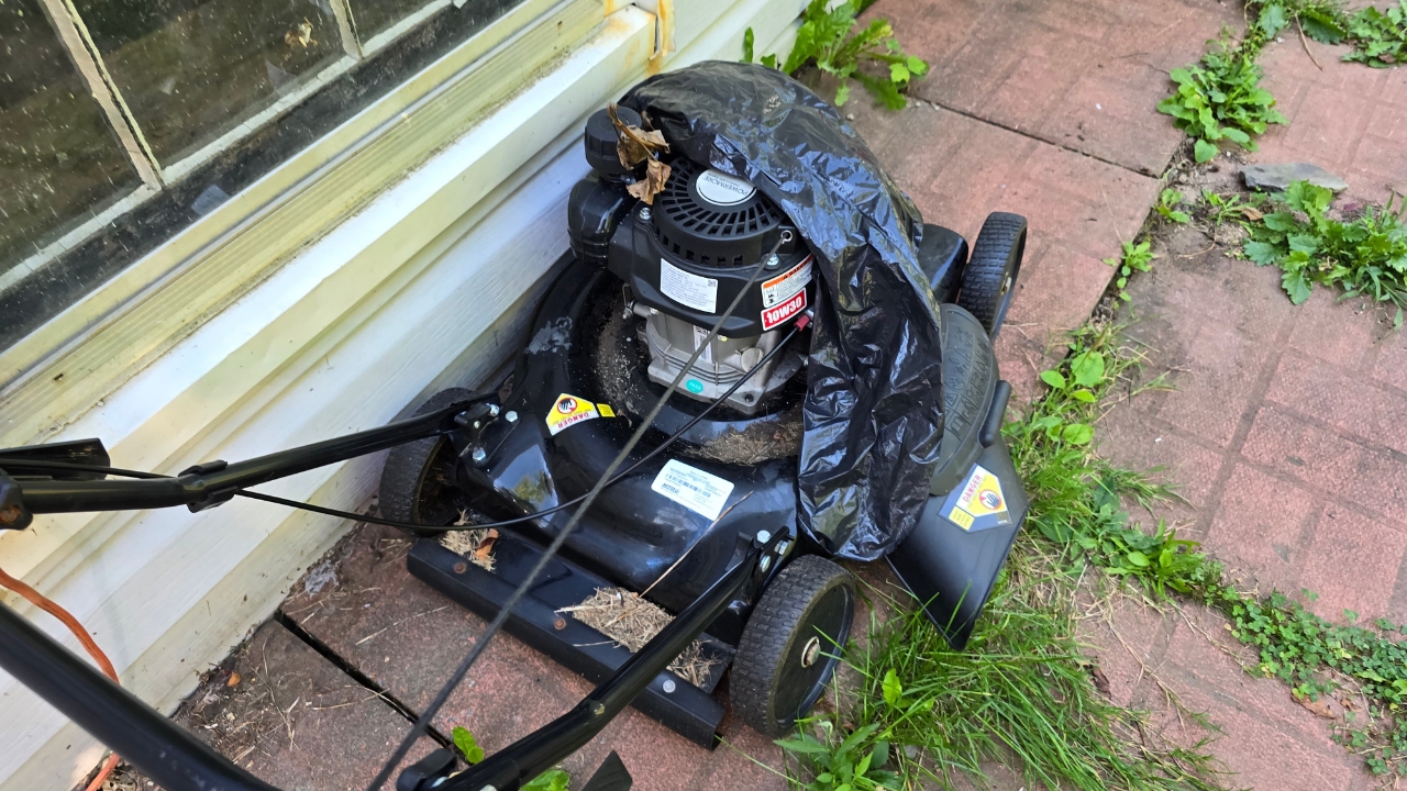 Rain, sun, and heat will wear down a budget mower fast. Plastic parts get brittle, cables rust, and that bright red paint starts flaking off by the end of the season if it’s left outside uncovered.