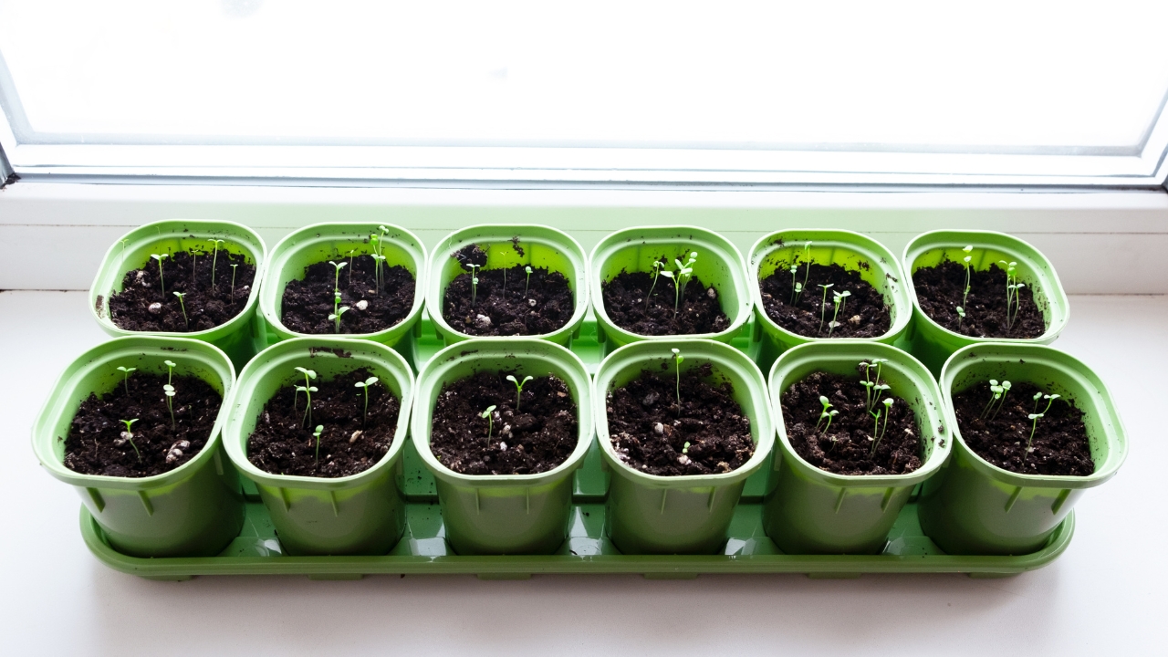 You don’t need fancy grow racks to start a few seeds. Look around your house for a bright windowsill, folding table, or shelf you could dedicate a little space to. Make sure there’s a way to keep trays off cold surfaces (a towel or tray helps) and a nearby outlet if you plan to use a grow light.