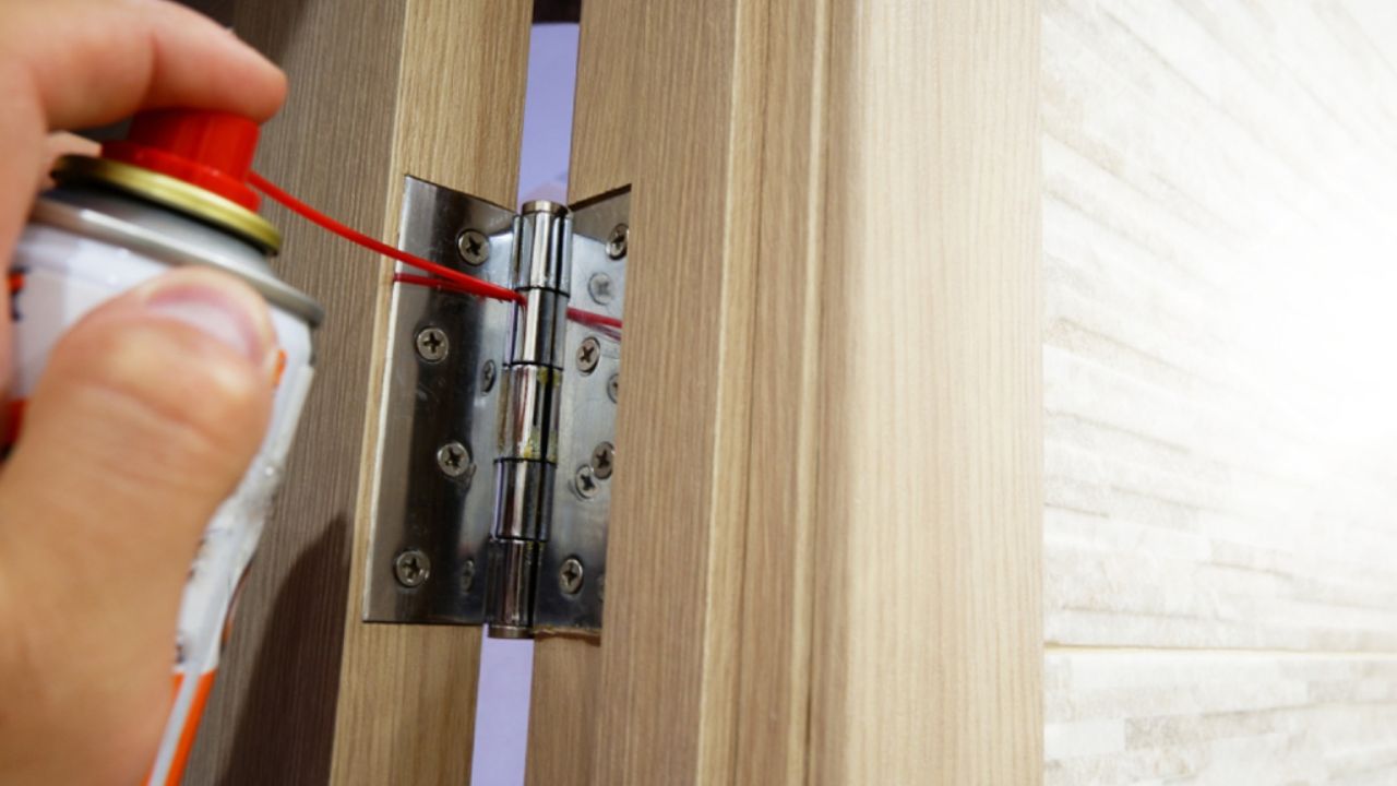 That squeak when you open a door isn’t just annoying—it’s also a sign the hinge is wearing down. A $5 can of lubricant spray can silence it instantly and protect the hinge from further damage.