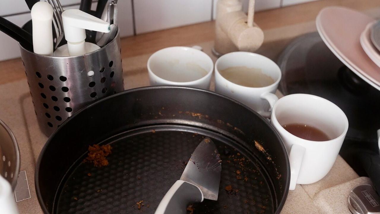 At some point, the sink will fill up. Decide ahead of time what you want people to do with their plates and forks. You can set a bus tub, empty dishpan, or one side of the sink aside for dirty dishes and ask everyone to put theirs there.