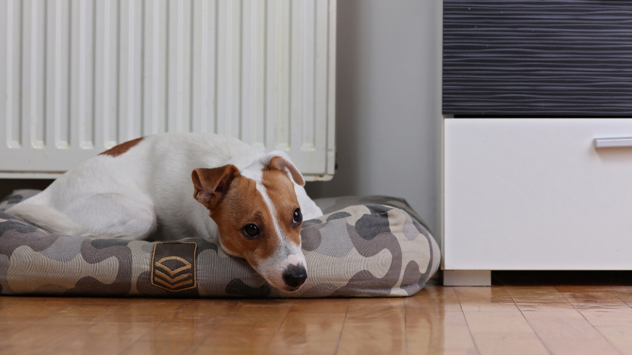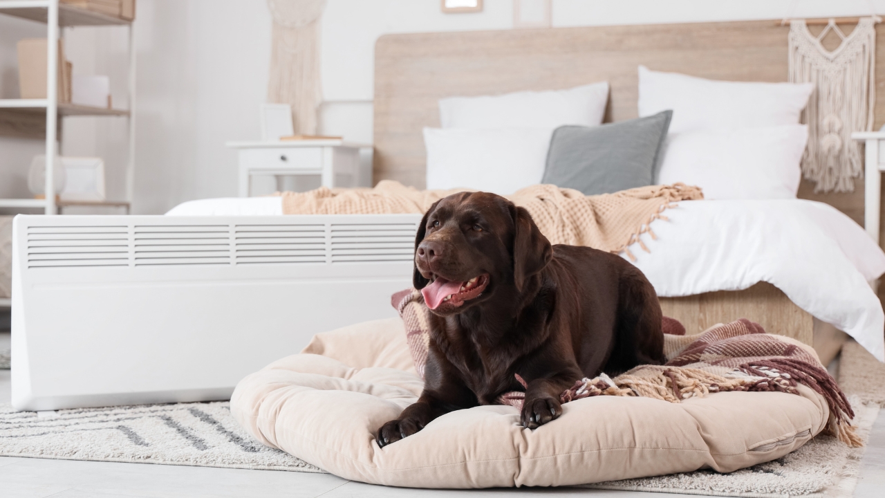 Dogs love warmth, but their beds shouldn’t be pressed against heat sources. Foam and polyester materials burn fast, and once they catch, it spreads quickly. Set them nearby, but not right on the heater.