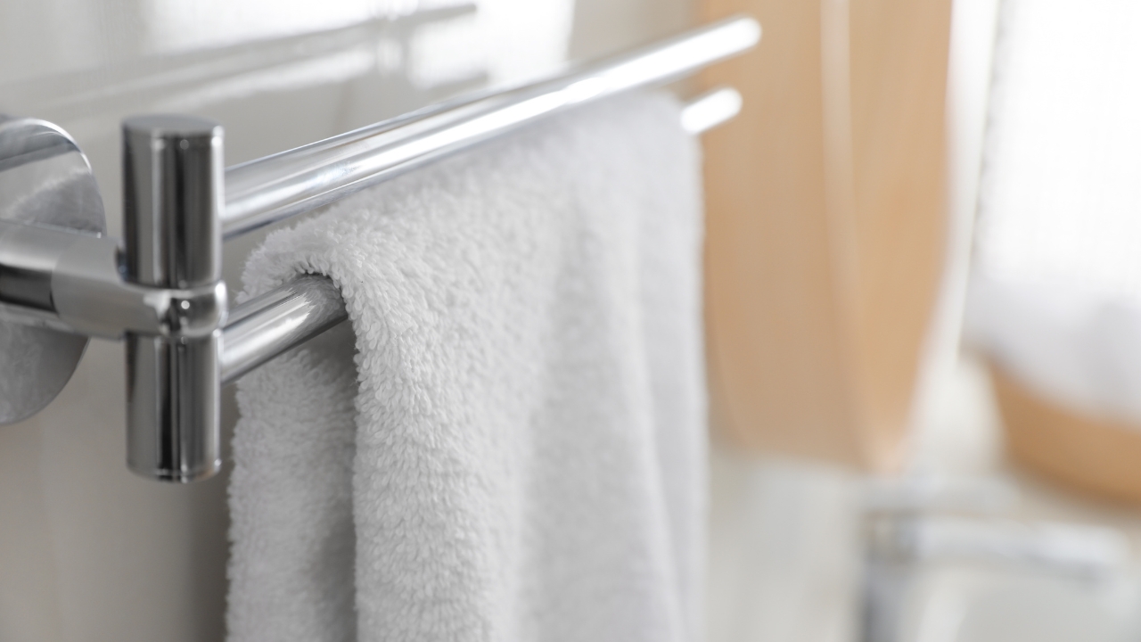Thick, coordinated towels make bathrooms feel more like hotel spaces. Old, thin towels give the opposite impression.