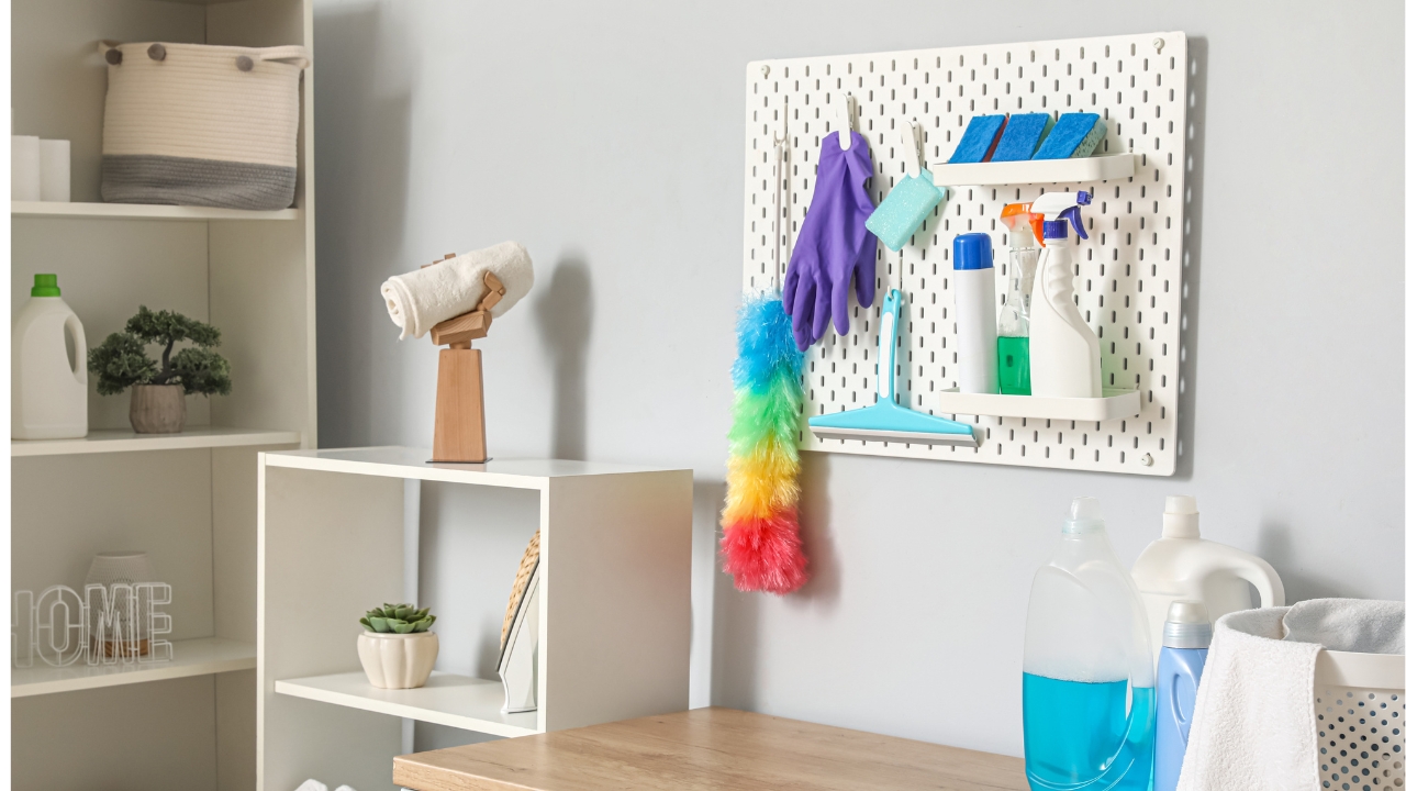 Pegboards aren’t just for garages. Mounted on a wall, they let you hang and rearrange tools, craft supplies, kitchen gear, or whatever clutter’s taking over. You decide the layout, and you can always tweak it later.