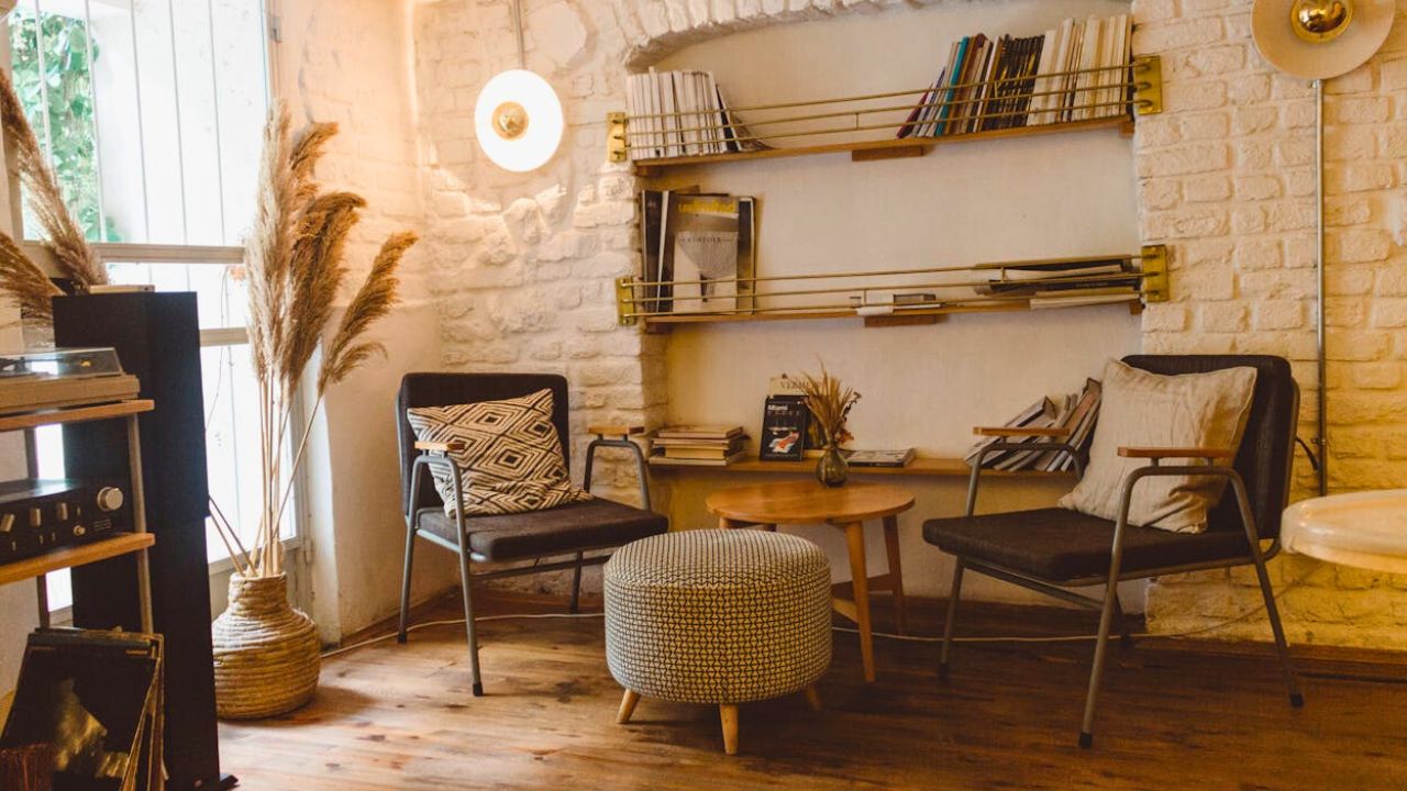 A slightly turned seat near a hallway reads like an invitation, not a barricade.
