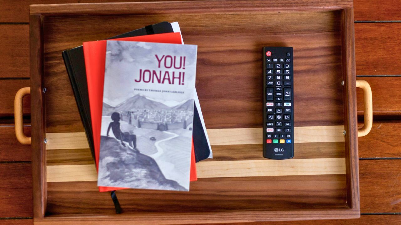 Tray on the coffee table, runner on the dresser, board by the range, bowl by the door.