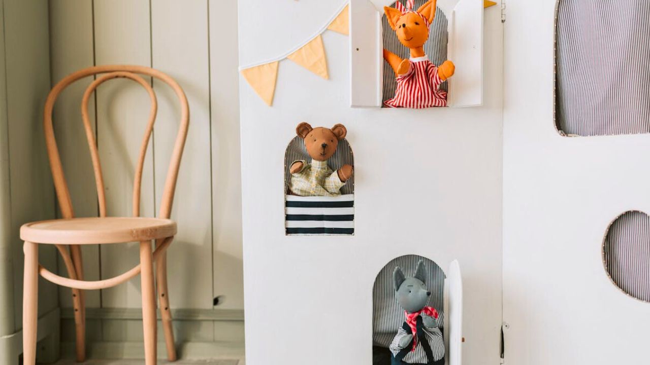 Rotate a handful of toys into the living area; the rest live in a closet.