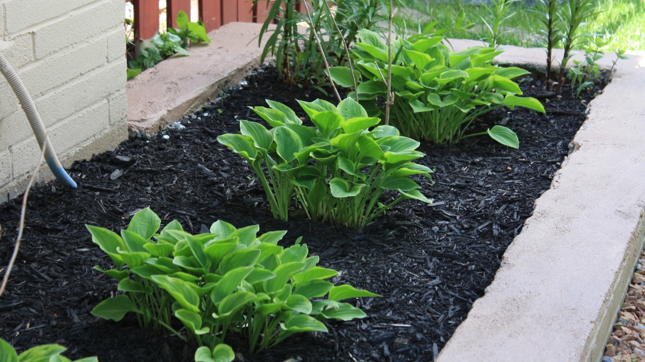 Adding fresh mulch or stone in a contrasting color helps frame your plants and make everything pop. It also adds texture, which helps break up large areas of green or bare ground.