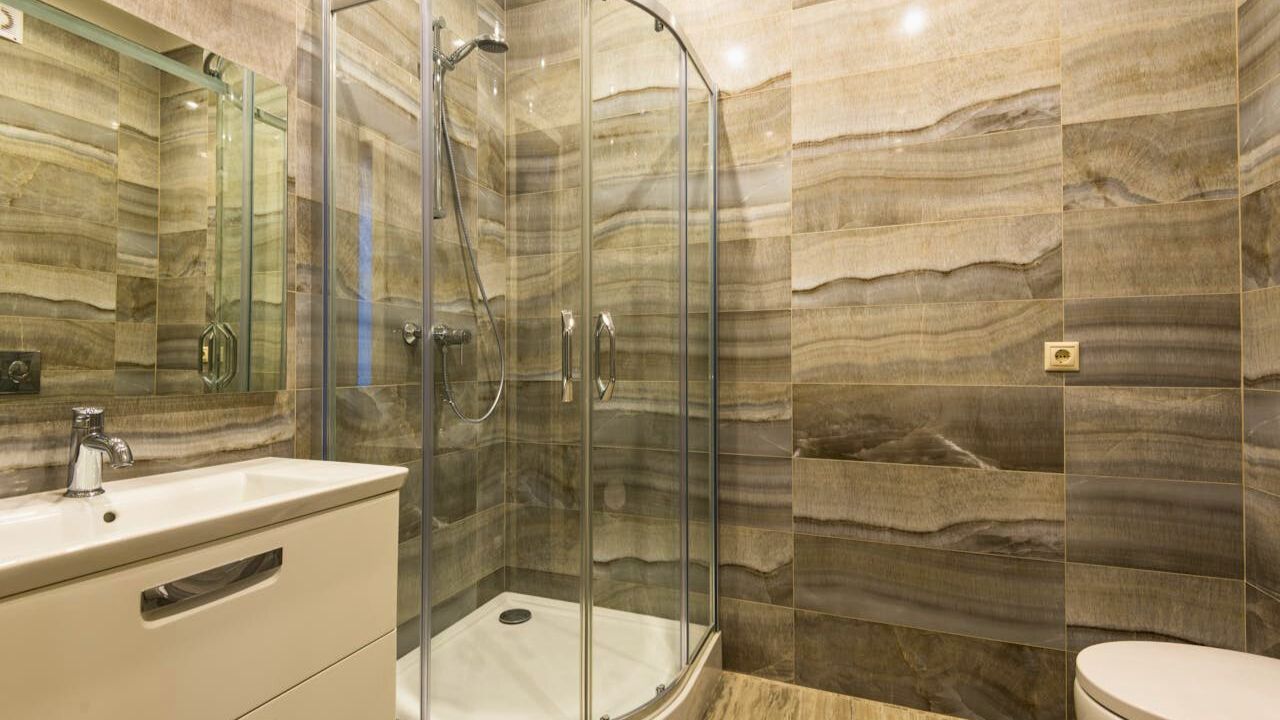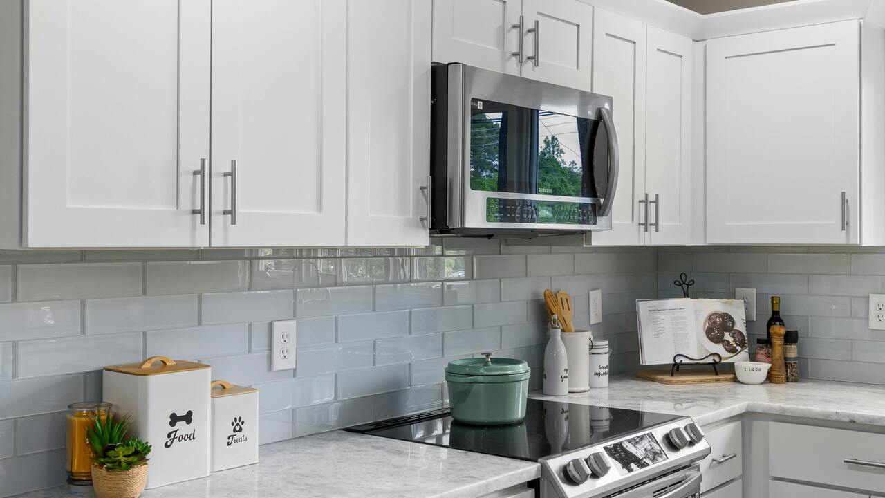 When swapping tile isn’t happening, pick a wall color that softens its undertone. Busy brown-speckled granite calms with mushroom or greige. Cool gray tile warms up with a creamy white. You’re harmonizing, not matching, so the tile stops shouting.