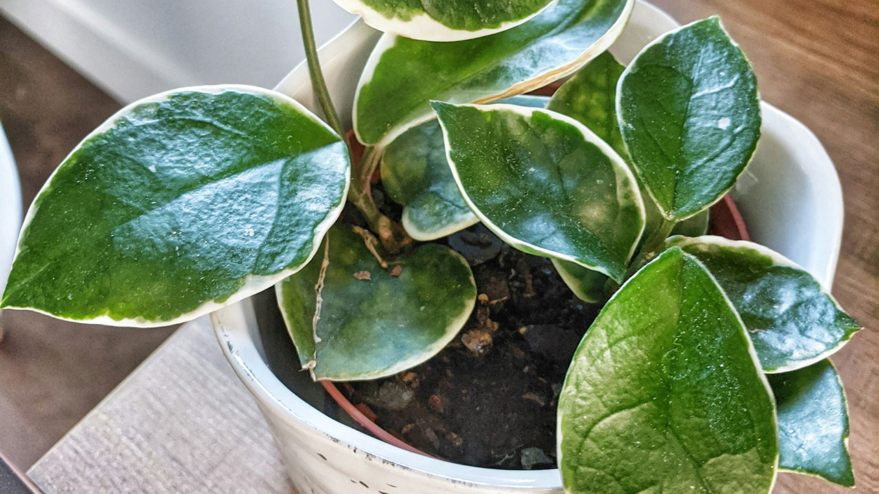 Hoyas have thick, waxy leaves that store water, which makes them much more forgiving in dry homes. Give them bright, indirect light and let the soil dry well between drinks. They look fresh year-round once they’re settled.
