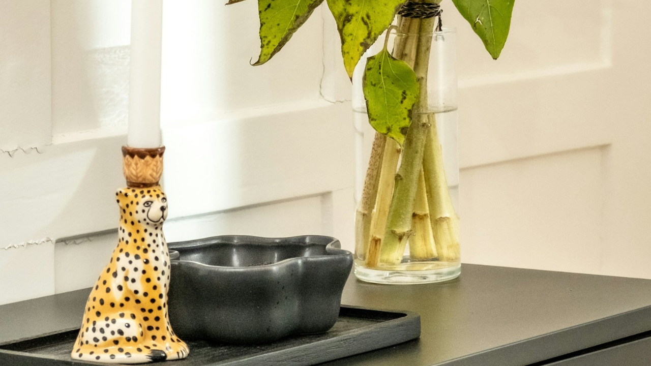 Swap a few frames and a lamp base. Save the odd finish for a closed room.