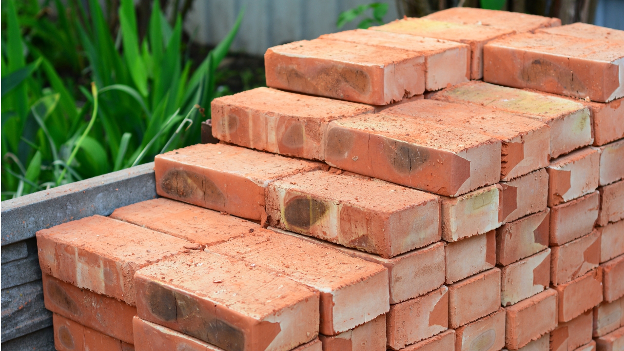 Don’t toss that old stack of bricks or pallets. They can become borders, garden paths, or even planter boxes with a little work.