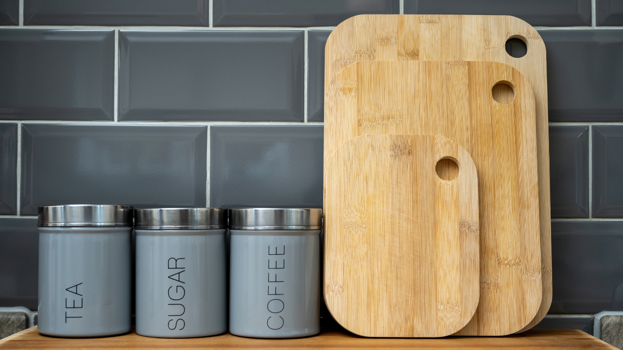 Mismatched clutter makes a kitchen look messy. Lining up a few matching canisters or jars for things like flour, sugar, or utensils instantly makes your counters feel more intentional.