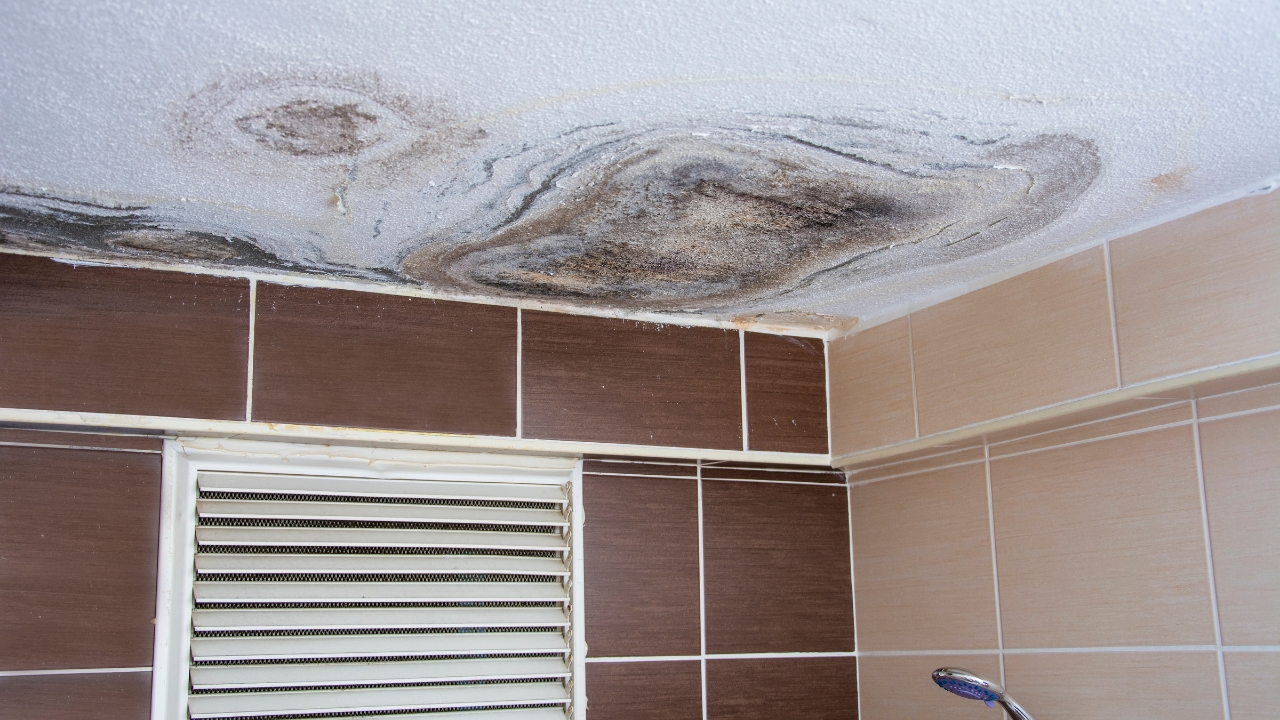 Brown or yellow spots often point to a leak above. Even small stains suggest water has seeped through building materials.