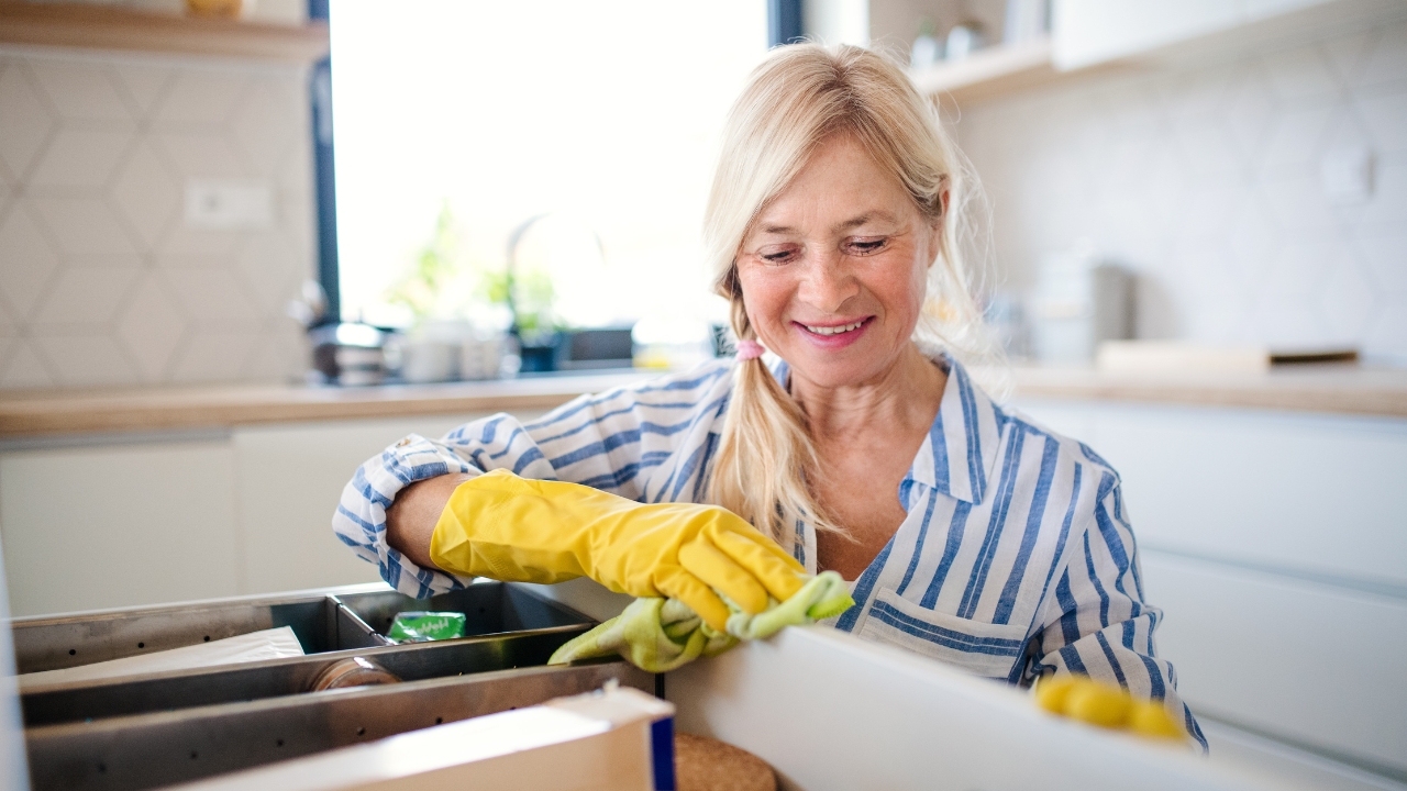 You probably wipe cabinet fronts, but crumbs and dust collect inside drawers and on shelves too. Silverware drawers, spice drawers, and snack cabinets are the worst. Spring is a good excuse to pull things out and give them a fresh start.