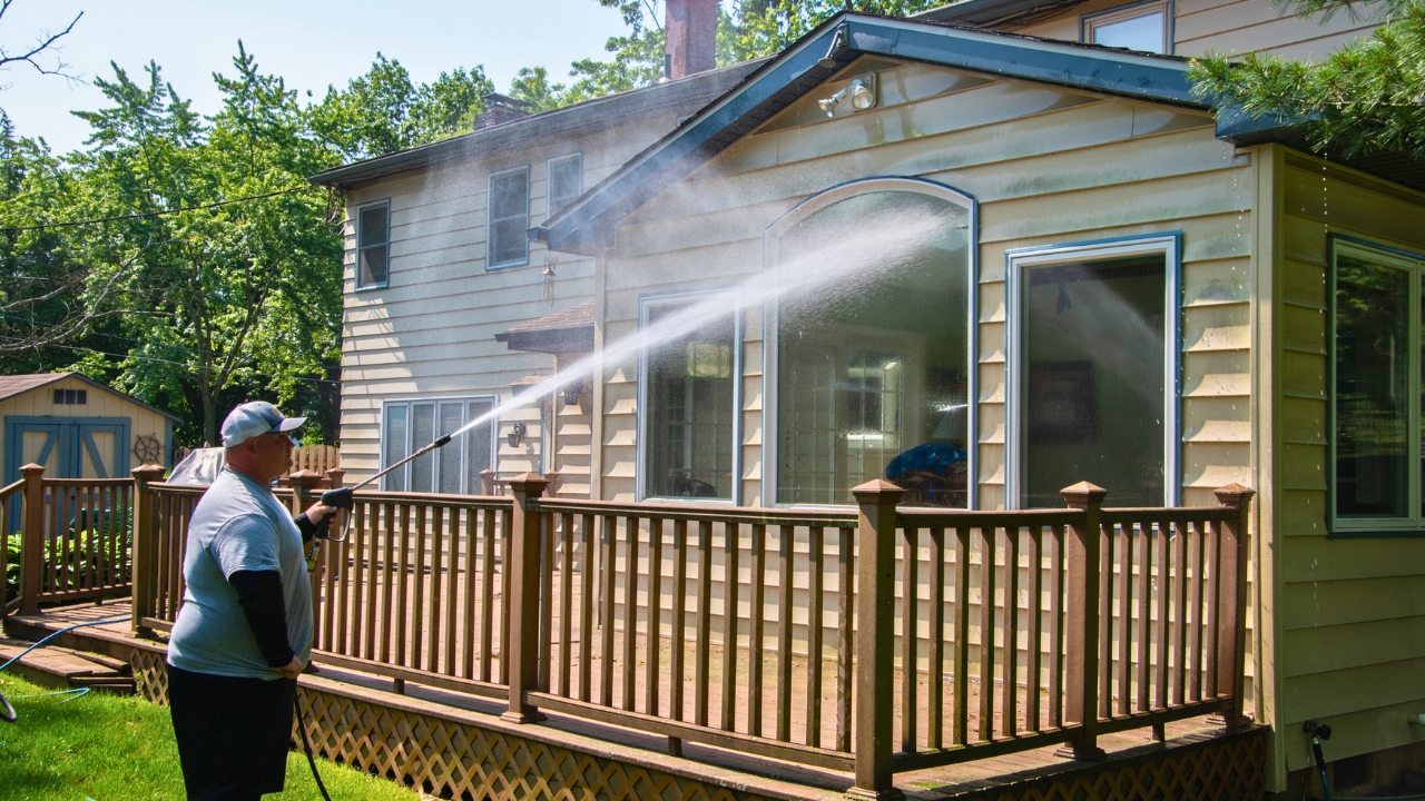 Green slime or black streaks on siding, patio blocks, or concrete steps make everything look dirty and ignored. Even if you stay on top of mowing, that mildew buildup drags the whole yard down.