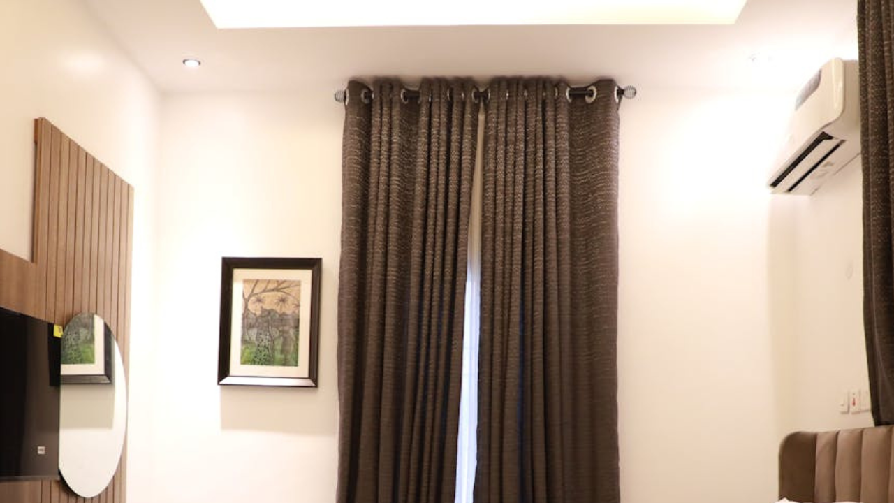 Hang rods near the ceiling, extend them past the window, and let panels kiss the floor.