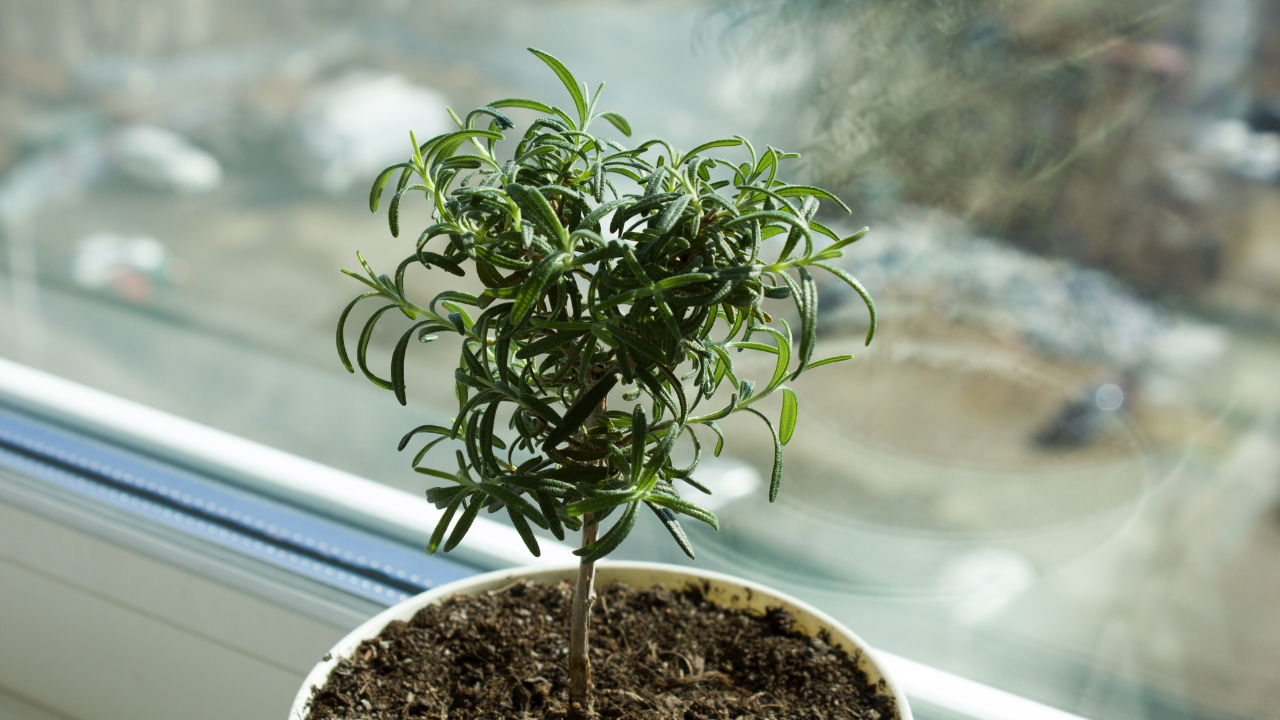 Rosemary stays green, smells good, and actually earns its keep in the kitchen. The tree shape adds height and structure on counters or islands. Just give it bright light and let the top of the soil dry before watering again so you don’t drown it.