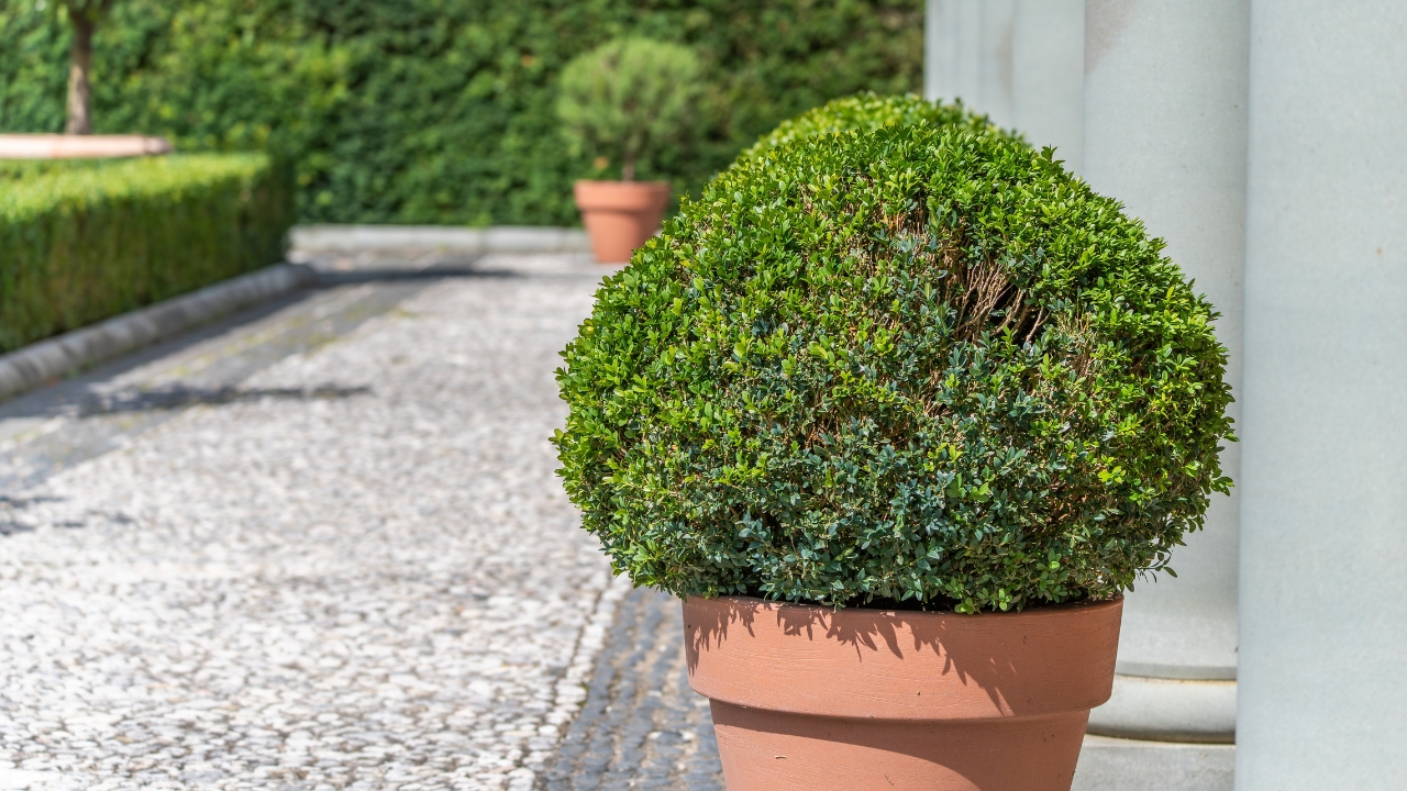 Boxwood spheres or cones in pots feel tidy and traditional. They anchor entry tables, fireplace hearths, or flanking a doorway. Indoors, they’ll need bright light and regular watering, but they give you that “formal” evergreen shape without needing a whole hedge.