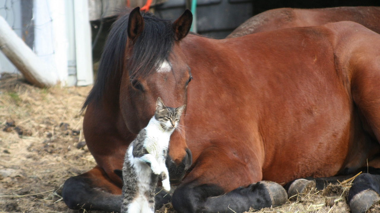 Cats benefit from the warm, dry shelter horses use, especially in colder months.
