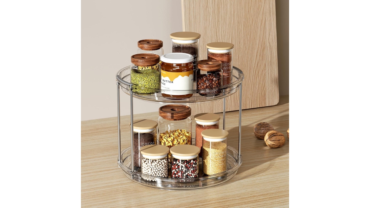 Because they’re clear, you can see exactly what’s there. The raised edge keeps bottles from tipping over, and the spinning doing the work means you’re not knocking three things over to reach the one jar you actually need. It’s simple, but it makes deep shelves so much easier to live with.